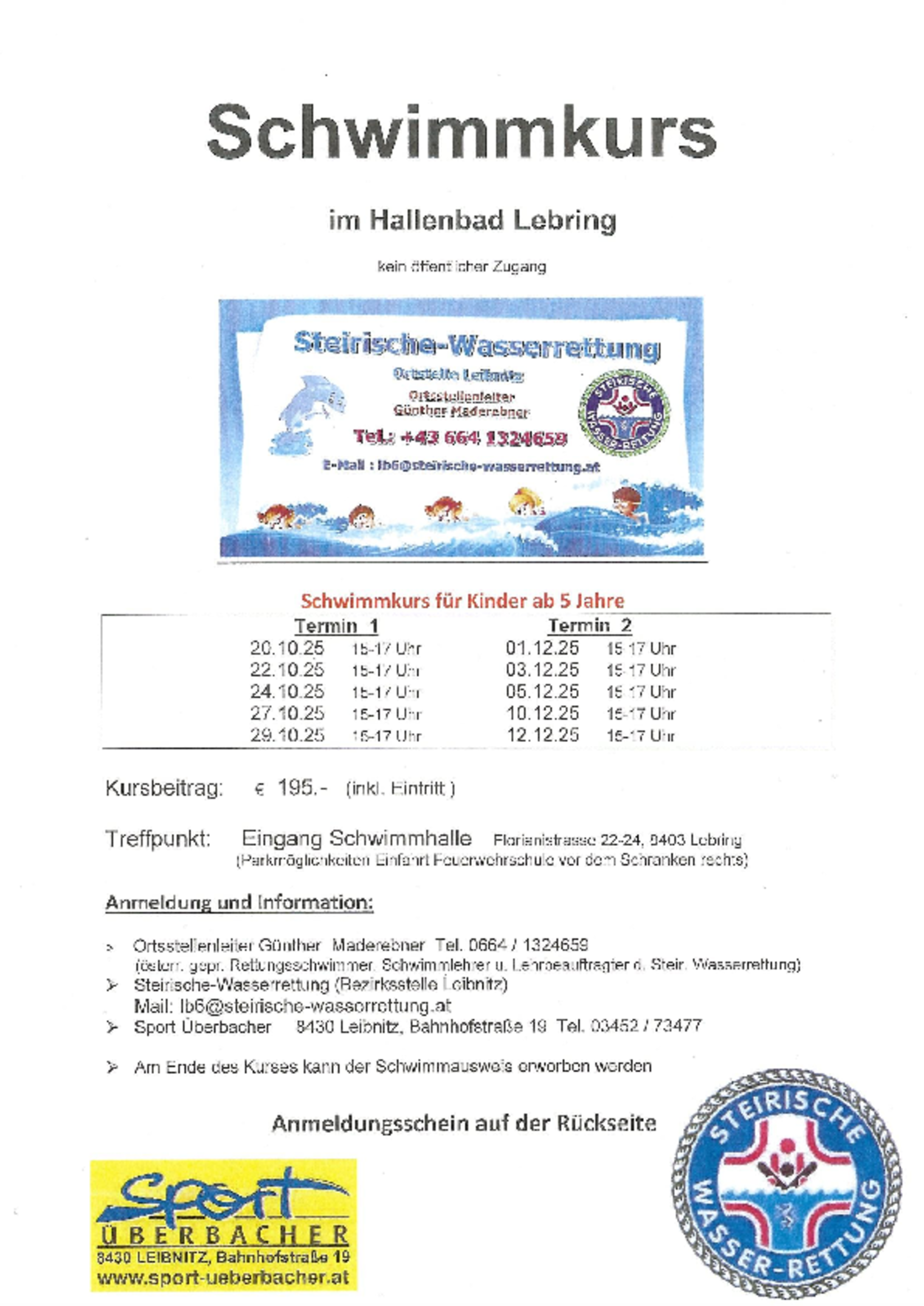 Schwimmkurs Hallenbad Lebring Herbst Winter 2025